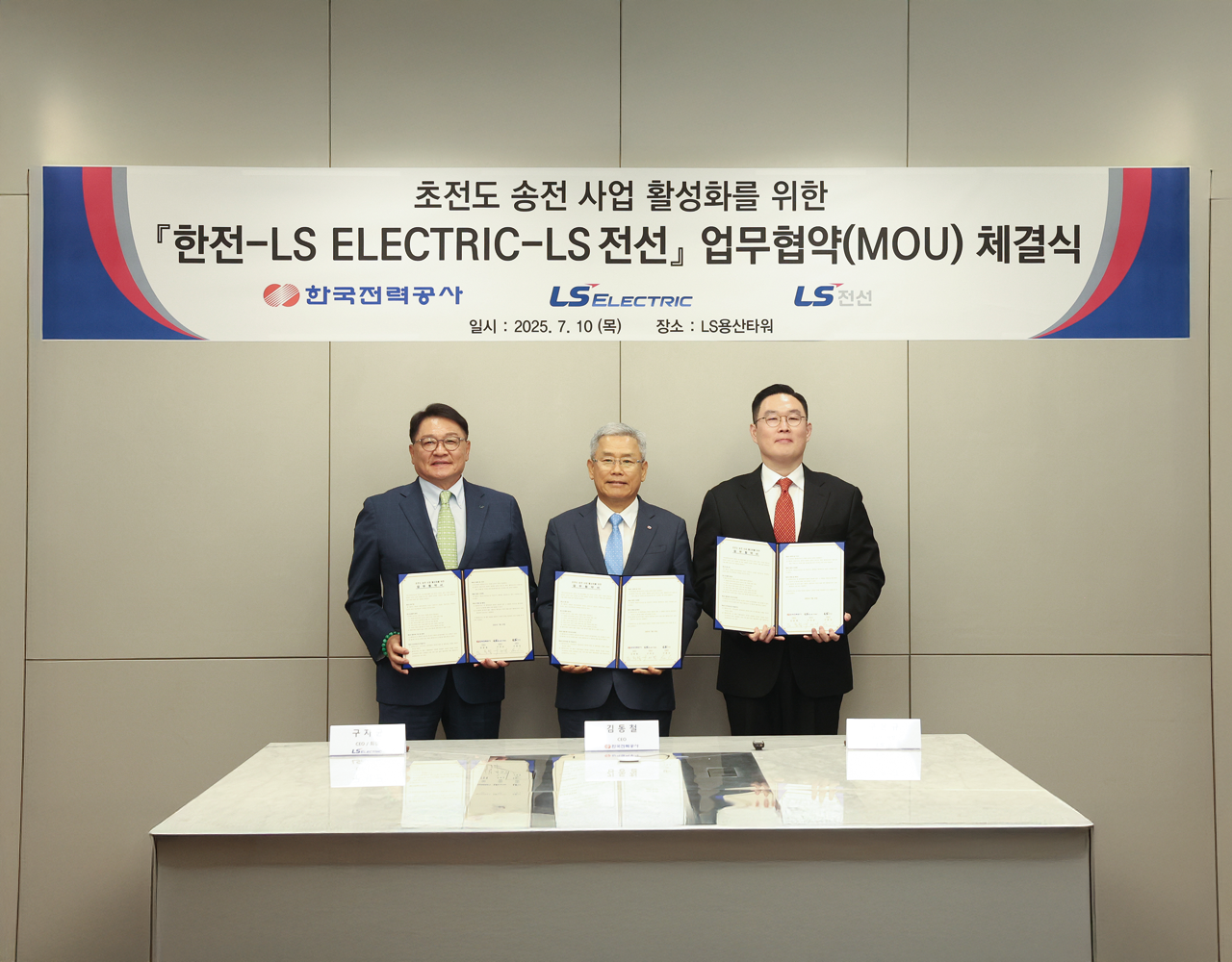7월 10일 LS타워에서 「한전-LS ELECTRIC-LS전선」 간 초전도 기술 확산을 위한 업무협약(MOU) 체결식이 열렸다. 이번 협약은 대용량 데이터센터와 AI 기술의 확산 등으로 인해 증가하는 전력수요에 대응하여 전력망 효율성을 극대화하고자 추진되었다.