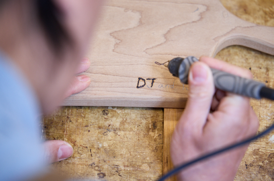 오늘 수업은 도마를 다듬어서 글씨를 새겨 넣고, 오일링 하는 세 단계로 진행됩니다. 직접 재단하진 않으니 비교적 간단해 보이지만 실제로 체험해 보면 손의 감각에 집중하느라 많은 집중과 정성이 필요했습니다. 가장 먼저 도마를 고정한 후 가장 거친 사포로 표면을 다듬었습니다. 거친 면이 어느 정도 정리 되면 사포를 두어 번 더 바꿔가며 정리하는데, 옆면과 손잡이는 넓은 면보다 거칠기도 하고, 곡선이 많아 사포로 다듬기 쉽지 않았습니다. 그래서 더욱 집중하다 보니 마음도 차분해지고, 도마를 다듬으면서 달달한 단풍나무 향이 올라오는 게 신기하기도 했습니다.